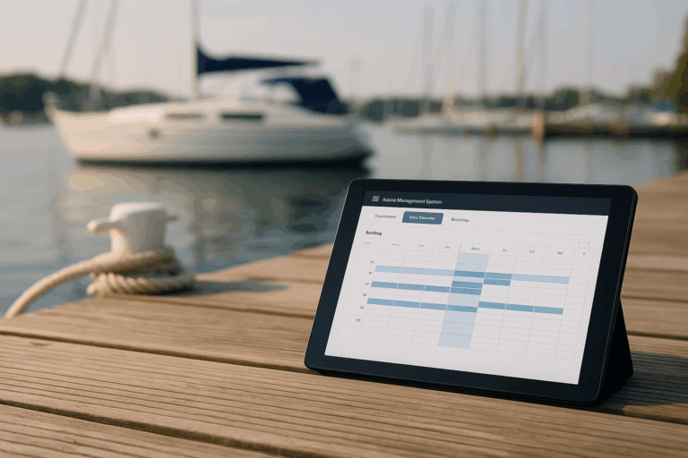 Yachthafenverwaltung mit Buchungsmöglichkeiten direkt am Bootssteg.